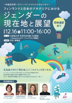北海道大学ダイバーシティ・インクルージョン推進本部は、国際シンポジウム「 ~幸福度世界一のフィンランド・オウル大学から学ぶ~フィンランドと日本のアカデミアにおける『ジェンダーの現在地と展望』 」を12月16日に開催します。