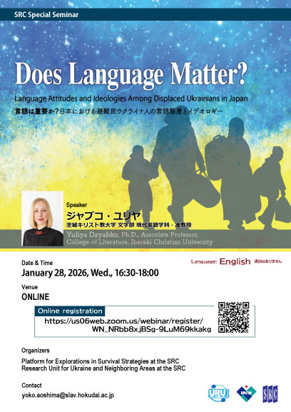 本セミナーのテーマ/タイトルは「Does Language Matter? Language Attitudes and Ideologies Among Displaced Ukrainians in Japan