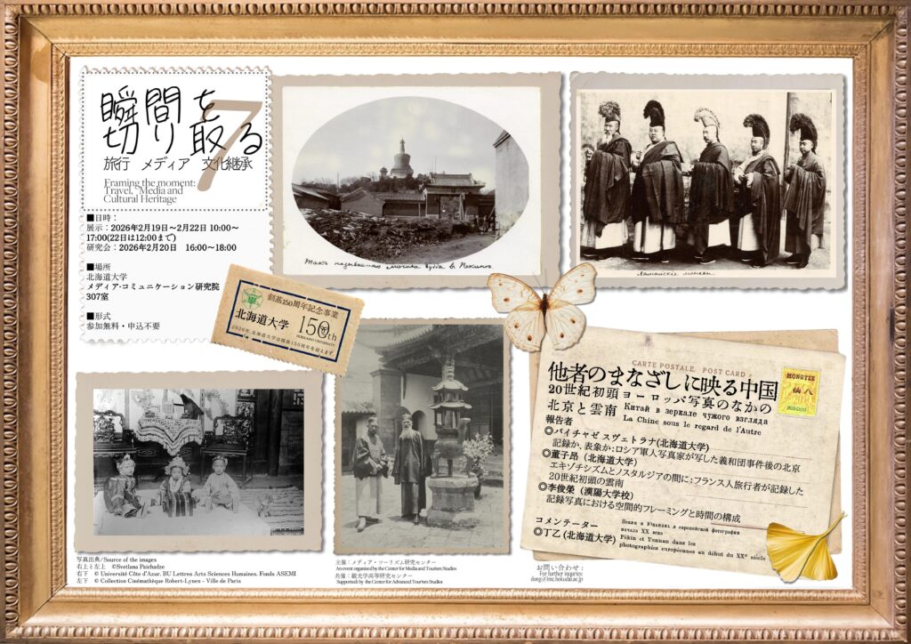 北海道大学メディア・ツーリズム研究センターは、2月19日~2月22日に、瞬間を切り取る:旅行、メディア、文化継承 7「他者のまなざしに映る中国:20世紀初頭ヨーロッパ写真のなかの北京と雲南 展示・研究会」を開催します。