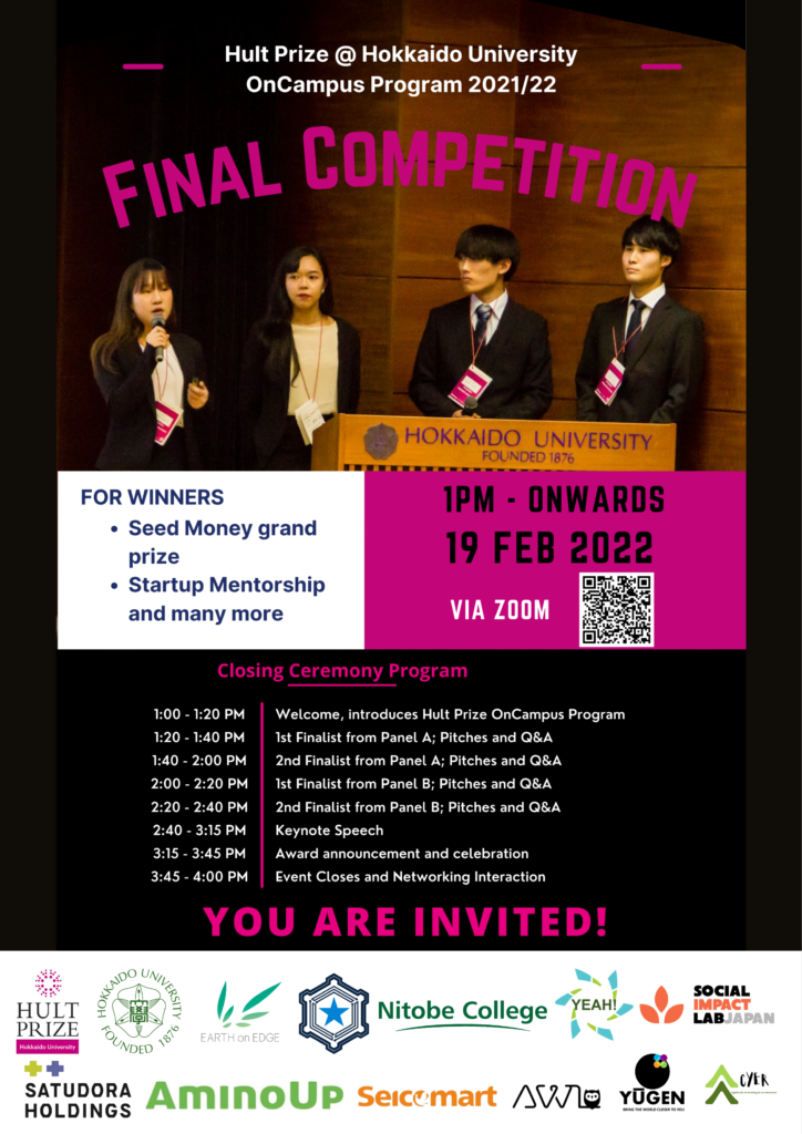 2022年2月19日(土)にハルトプライズ学内大会(HULT PLIZE 2022 ON-CAMPUS Program 2021/22)が開催されます。