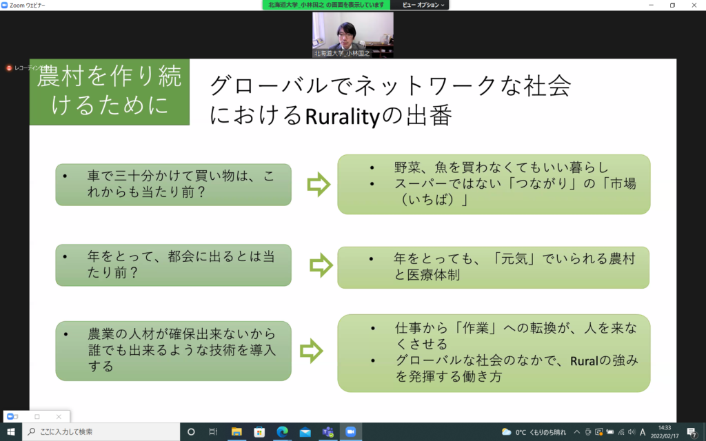 「農村づくりとSDGs」講師:小林 国之氏(北海道大学大学院農学研究院 准教授)