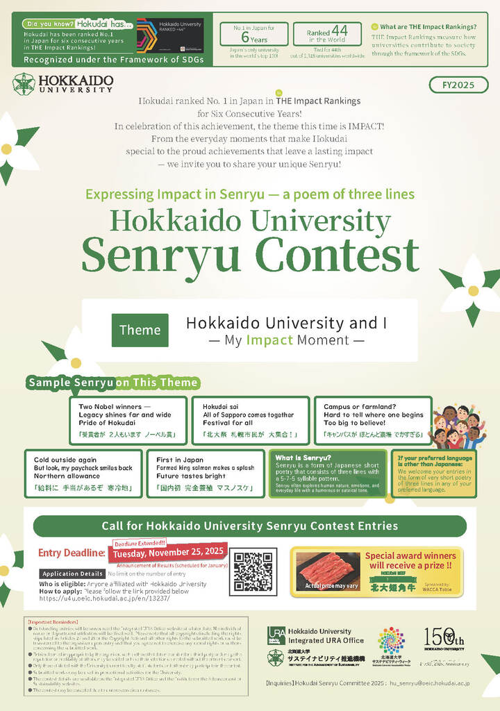 The Integrated URA Office, in collaboration with the Institute for the Advancement of Sustainability, holds the “Hokkaido University Senryu Contest 2025” to promote communication across the university community.