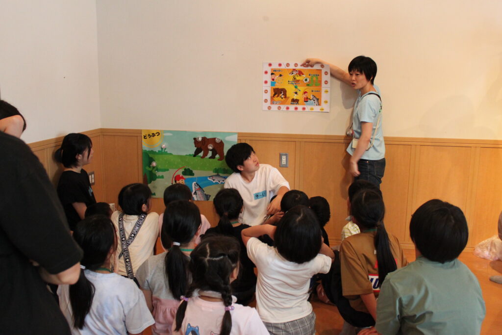2日目と3日目は、厚沢部町が主体となって、自然や人との関わりを実際に歩いて体験するフィールド活動があり、子どもたちはSTの学生の伴走により、学びを深めました。最終日は、厚沢部町によるプログラムの振り返りとエゾリンクによる学びの総括が行われ、その中ではSTの学生が編集した4日間の振り返り動画も上映されました。本サマーキャンプは、学生にとっても実践的な学びの場となり、教育・地域づくり・研究がつながる「北海道大学×SDGs」の好事例となりました。大学院教育推進機構と広報・社会本部では、自治体や企業と連携しながら、次世代の子どもたちにSDGs達成に向けた学びの機会を提供していきます。